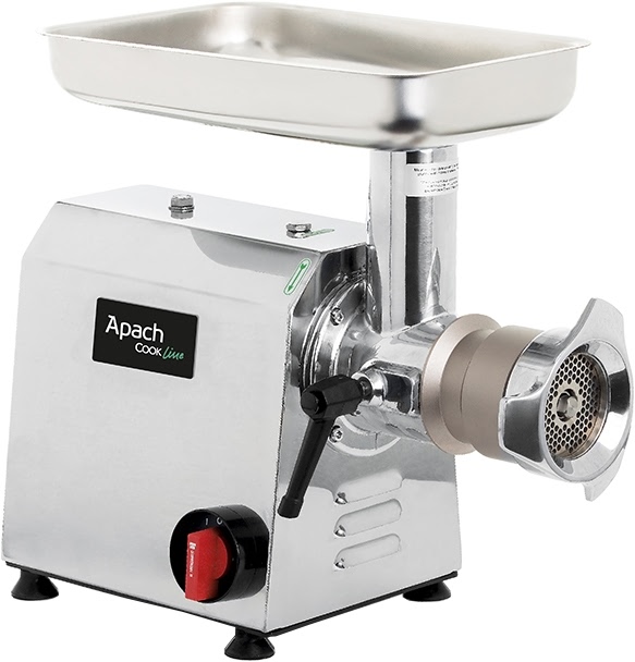 Электрическая мясорубка APACH Cook Line ATI22UT полный унгер предназначена для измельчения мяса, рыбы и других продуктов для приготовления большого ассортимента блюд. Система "полный унгер" существенно сокращает время переработки и позволяет перерабатывать продукты любого качества: жилованное и низкосортное мясо, замороженные полуфабрикаты, субпродукты и т.д. Корпус выполнен из высококачественной нержавеющей стали AISI 304, мясорубочная часть и шнек – из пищевого чугуна, ножи, решётка, лоток и горловина – из нержавеющей стали, толкатель – из ABS-пластика.