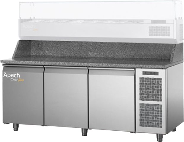 Стол для пиццы APACH Chef Line LTPZ111TUD32 с агрегатом предназначен для охлаждения, хранения и разделки продуктов для пиццы, а также для раскатки теста. Имеет самозакрывающиеся реверсивные дверцы с магнитными трёхкамерными уплотнителями и регулируемые по высоте ножки (100-150 мм).
