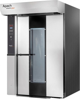 Ротационные печи APACH предназначены для выпечки хлебобулочных и кондитерских изделий в режиме поточного производства. Используются преимущественно на крупных продовольственных предприятиях, в пекарнях и кулинарных цехах, а также в супермаркетах с собственной кухней. Конструктивно представляют собой вместительные камеры из нержавеющей стали с надёжными теплоизоляционными панелями и устройством вращения посредством платформы или крюка. Оборудование может быть встроено в поточные линии с непрерывными тяжёлыми циклами выпечки для достижения максимальной производительности предприятия.