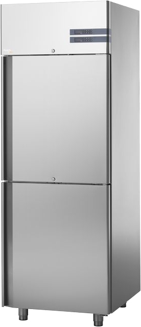 Комбинированный шкаф APACH Chef Line LCK70N1M1D2R без агрегата предназначен для хранения в замороженном или охлаждённом состоянии мяса, курицы, рыбы и других продуктов и полуфабрикатов. Внешняя отделка и внутренняя отделка, дверная ручка и ножки выполнены из прочной, стойкой к коррозии нержавеющей стали AISI 304 с изоляцией толщиной 75 мм, задняя стенка, база и внутренний технический отсек – из оцинкованной стали.
