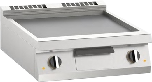 Электрическая жарочная поверхность APACH Chef Line SLFTE87L 700-й серии предназначена для обжарки и разогрева мяса, птицы, рыбы, овощей и других продуктов. Имеет 2 зоны нагрева с гладкой поверхностью. Столешница, вентиляционная решётка и передняя панель выполнены из нержавеющей стали AISI 430, поверхности – из конструкционной стали толщиной 15 мм, нагревательные элементы – из армированной нержавеющей стали.